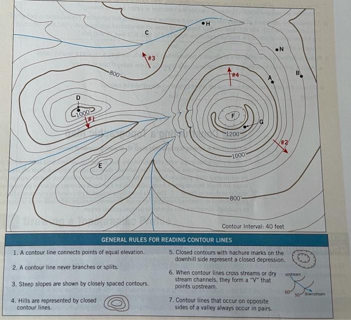 Solved General Rules For Reading Contour Lines 1 A Contour Line Connects Points Of Equal Elevation 5 Closed Contours With Hachure Marks On The D Course Hero